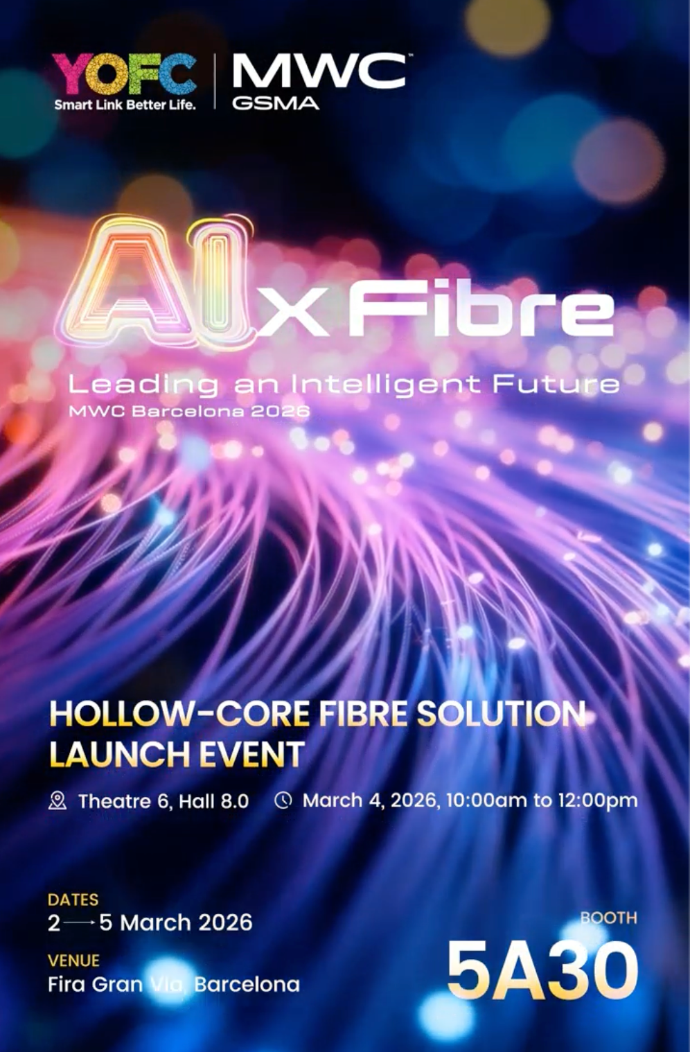 As a technology bellwether in the global mobile communication sector, MWC Barcelona 2026 will be held from March 2 to 5. YOFC will showcase a series of cutting-edge technologies and innovative products, and join hands with global partners to explore breakthroughs and evolutionary paths for optical communication technologies.
