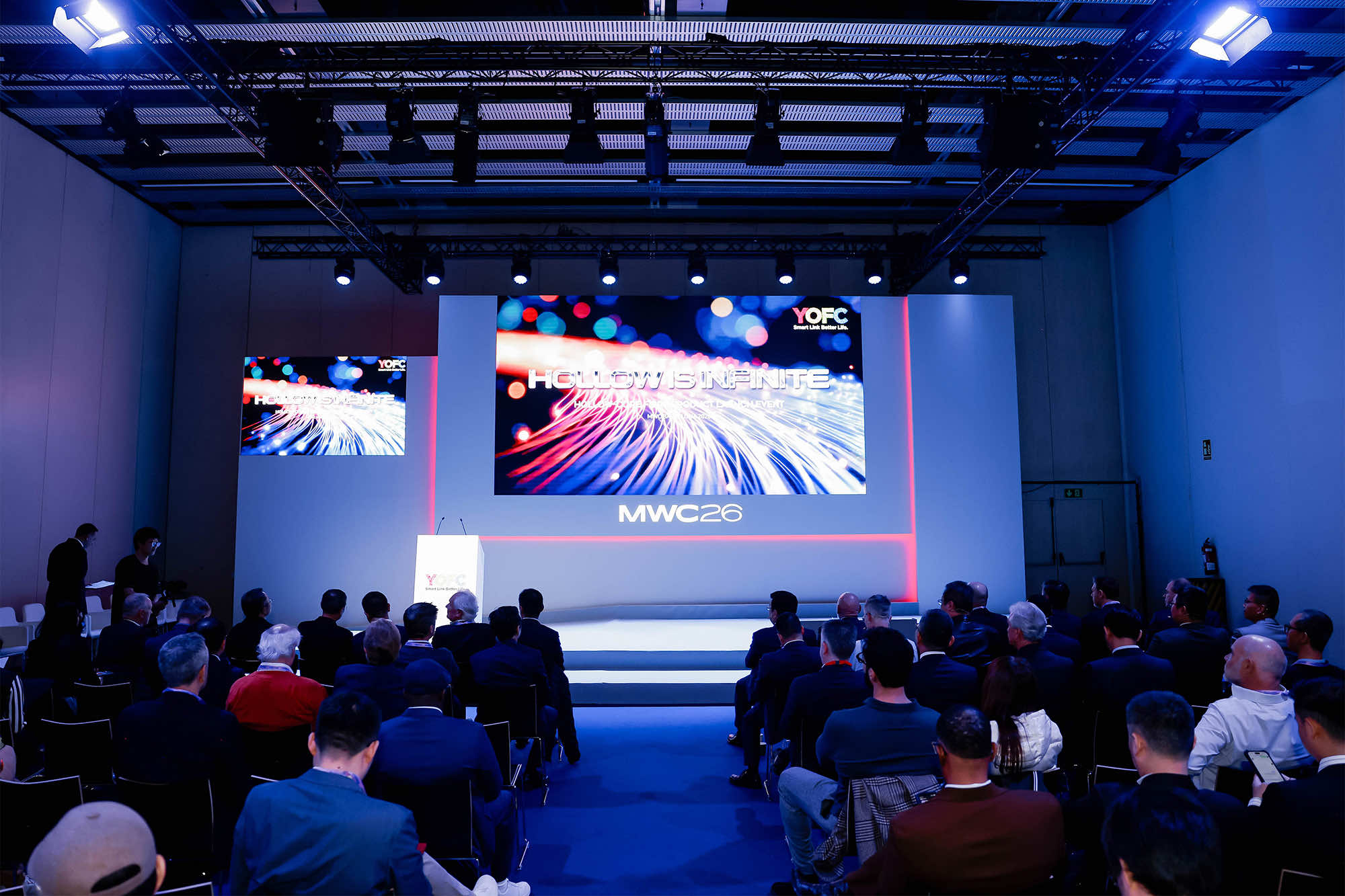 Under the theme “HOLLOW IS INFINITE,” Zhuang Dan introduced YOFC’s anti-resonant hollow-core fibre and officially unveiled the HollowBand® brand.